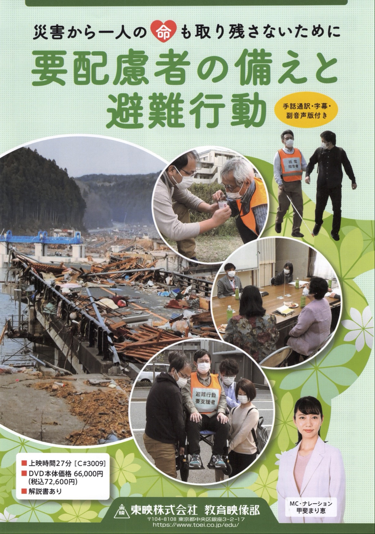 地震や津波で死なないためにー心に刻む5つのことー(15分) | 地域の人々を戦力に ~自主防災の新しい挑戦~(24分) | ①災害の備え・点検を(23分) ②グラっと来たら、身を守る方法(22分) ③避難生活の心構え(24分) |