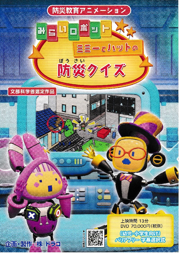 | 地震だ!!ミーちゃんのぼうさいくんれん(12分) | 災害ケーススタディ とっさの判断!君ならどうする?(75分) | こどものための防災・防犯シリーズ もしものときにできること | 忍者玉丸の火の用心 (13分) |