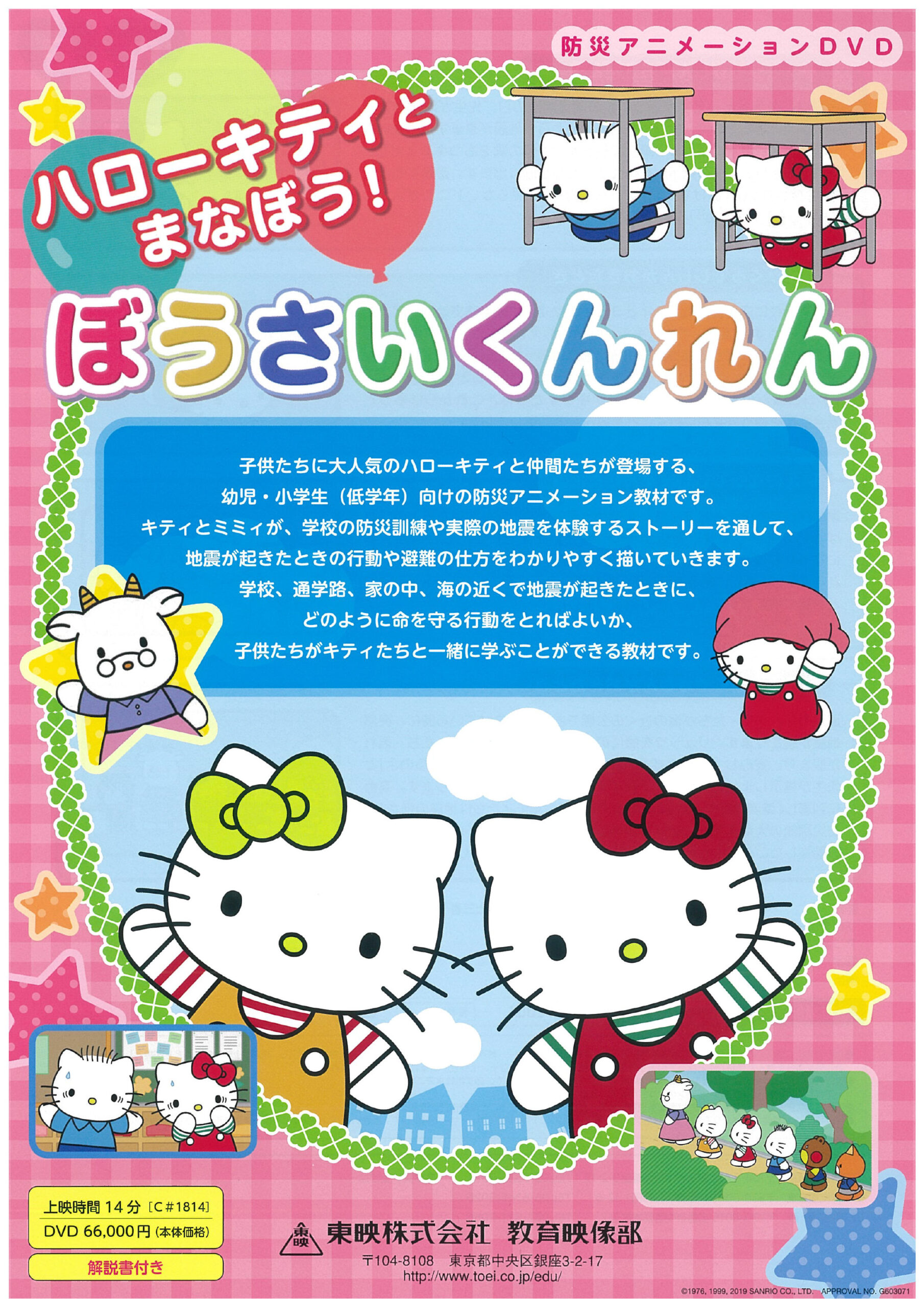 火事から自分の命を守る~生き抜くためのリスクウォッチ~(15分) | はなかっぱのぼうさいくんれん 「おかしもち」でいのちをまもろう(14分) | ハローキティとまなぼう!ぼうさいくんれん (14分) | うしわかまるの 地震と火事から自分を守る!(10分) |