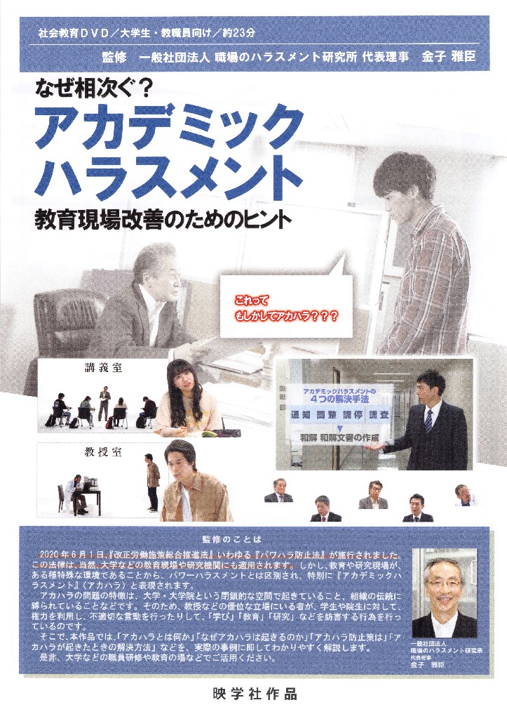| どうしてそんなこと聞くの?~公正な採用選考のために~(27分) | 職場の日常から考える パワーハラスメント(28分) 通常版・字幕版同時収録 | 内定者からの手紙(26分) 字幕版あり |